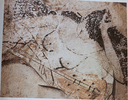 It is a shard of pottery used for practice. I had it wrong all along. When I notice the tiny black line denoting the bottom of her chin and understood it as such I became excited because the artist arrived at a solution so similar to one I painted myself. I saw my own earlier picture where before I had seen something more like Matisse, more unusual, but no, it conformed to canon and the little black line is the tell.